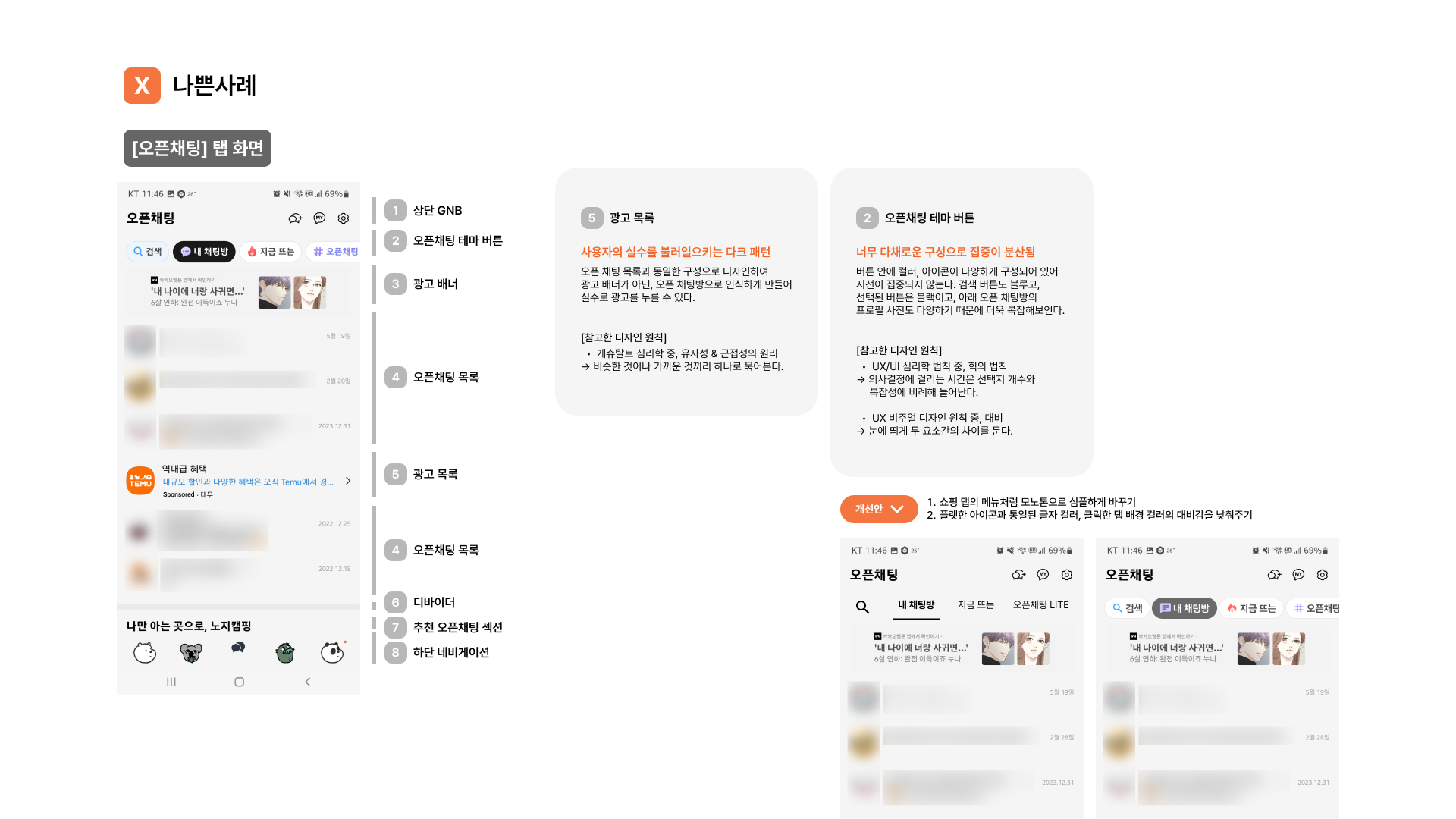 👩🏫 화면 구조 분석 → 디자인 원칙 기반 분석 → 개선점 찾기 순서로 분석해 보세요