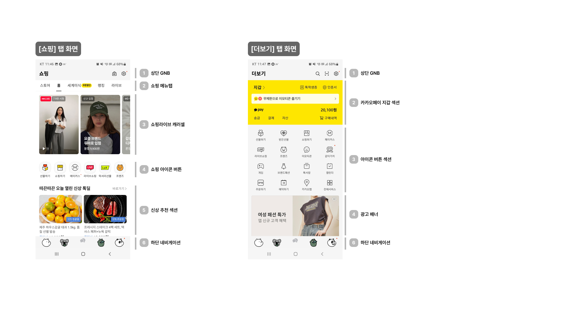카카오톡에서 5개의 메인 탭 화면이 각각 어떠한 구조로 되어있는지 나눠보세요.