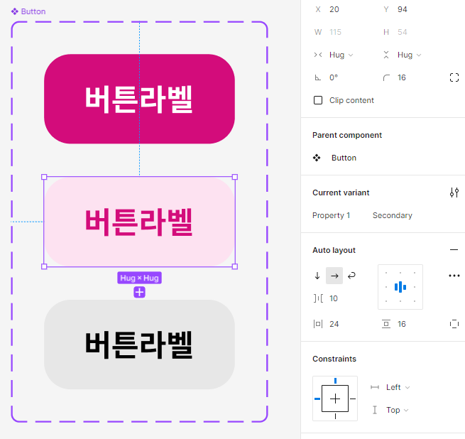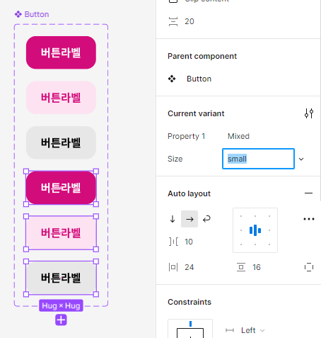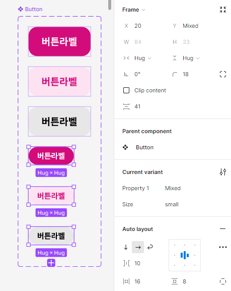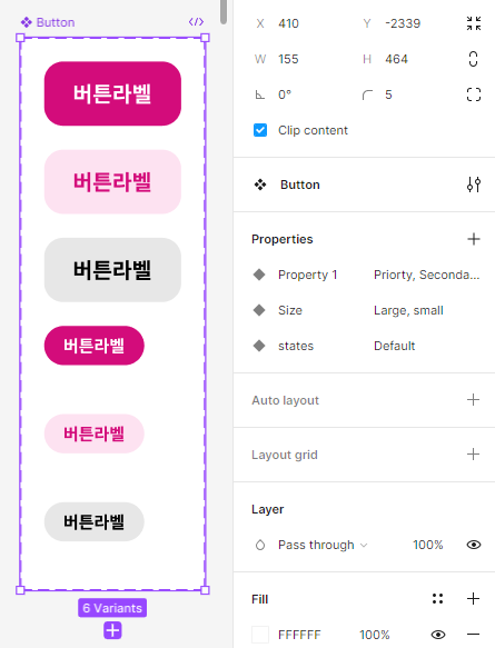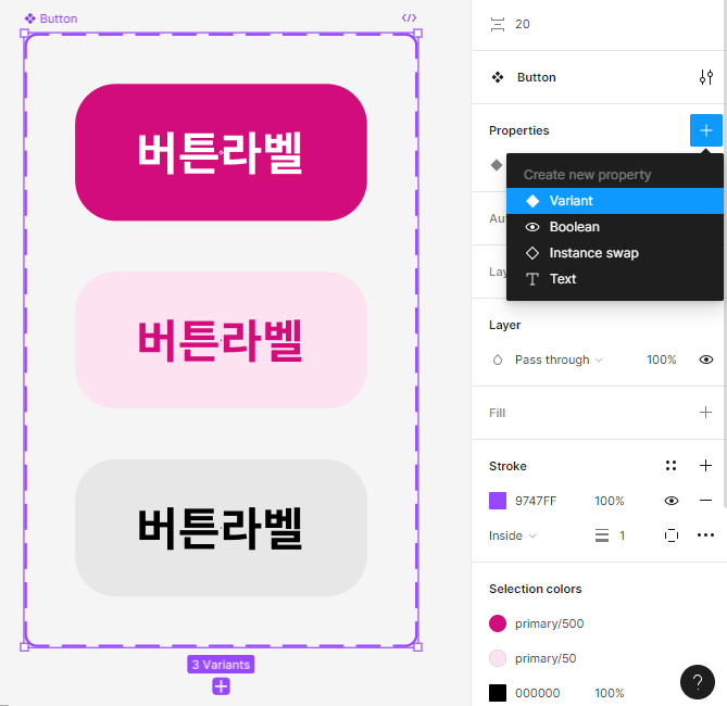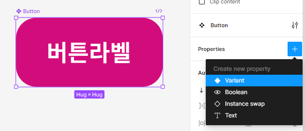 - 컴포넌트를 만들고, 프로퍼티에서 베리언츠를 만들어준다.