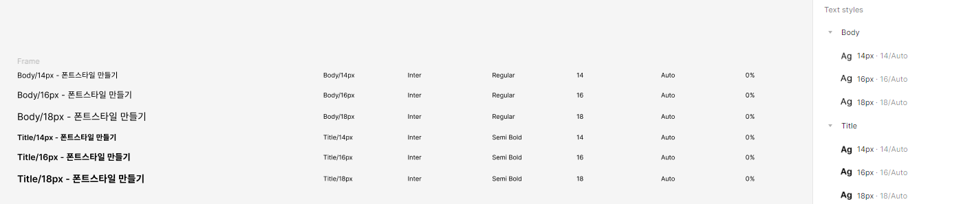 - 폰트 이름 변경하기 Body/16px, Title/16px...