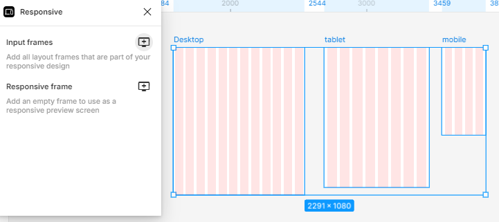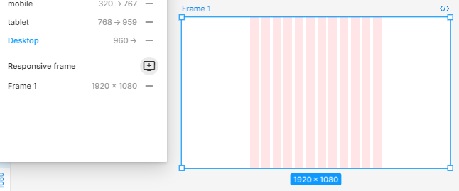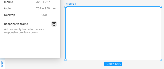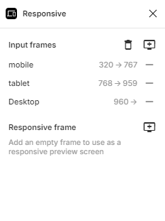 - 적용할 화면 프레임 선택 하고, Responsive frame 선택