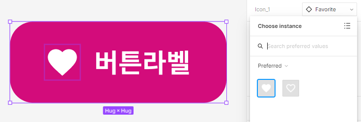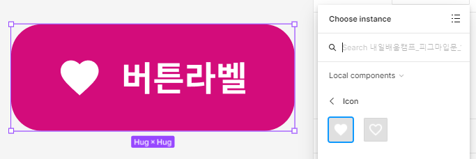 1) 아이콘 모음에 있는 컴포넌트를 복사해서 인스턴트를 라벨 앞에 넣어준다.