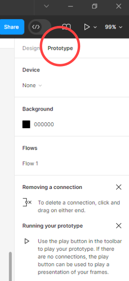 - 우측 사이드 패널에서 Prototype을 누름