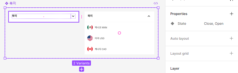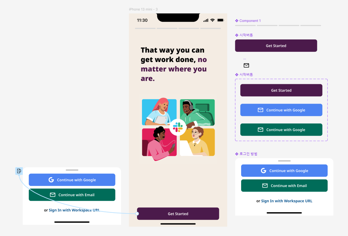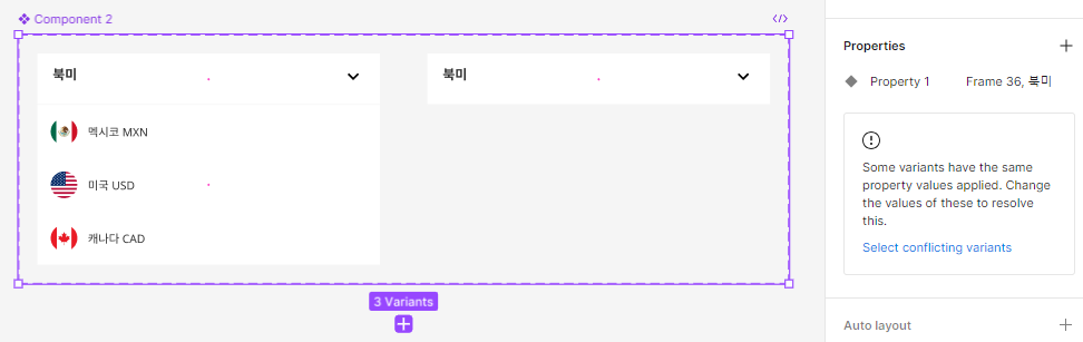 처음 두 프레임을 묶어서 컴포넌트 세트를 만들면