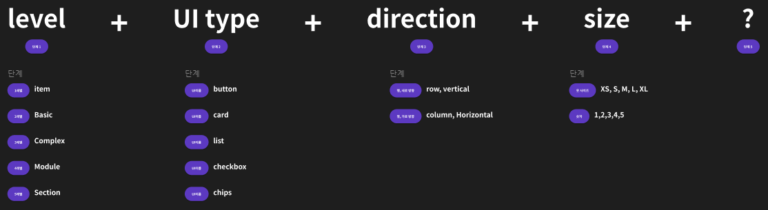 Level : 최소단위를 얼마나 조합한건지 단계별로, 모듈과 모듈을 합치면 섹션