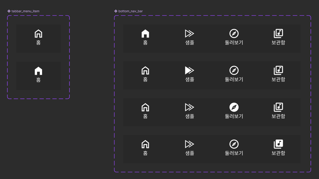 아이콘 여러 개 붙인 탭에 각각의 활성화 상태를 여러개 만들어서 배리언츠 적용하기