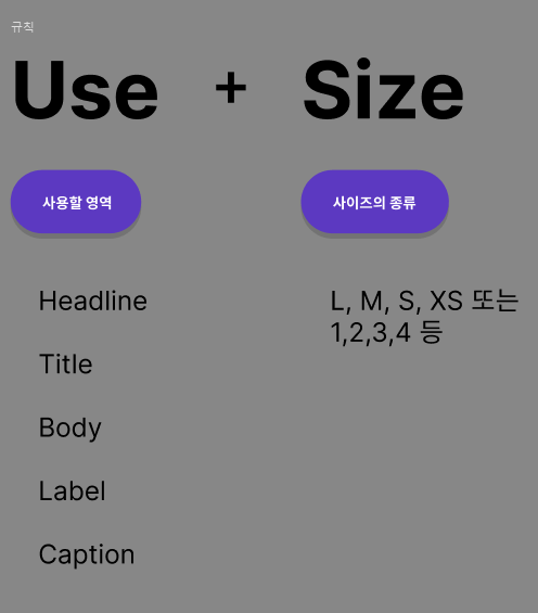 헤드라인, 타이틀, 바디, 레이블 + XS, S, M, L