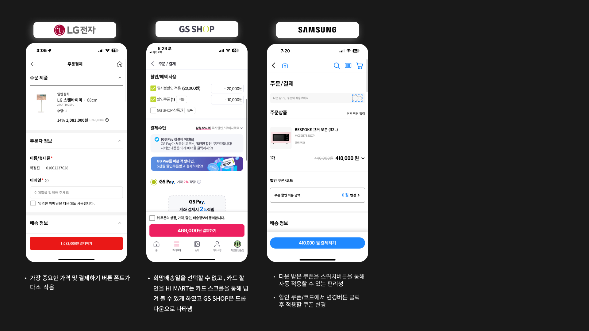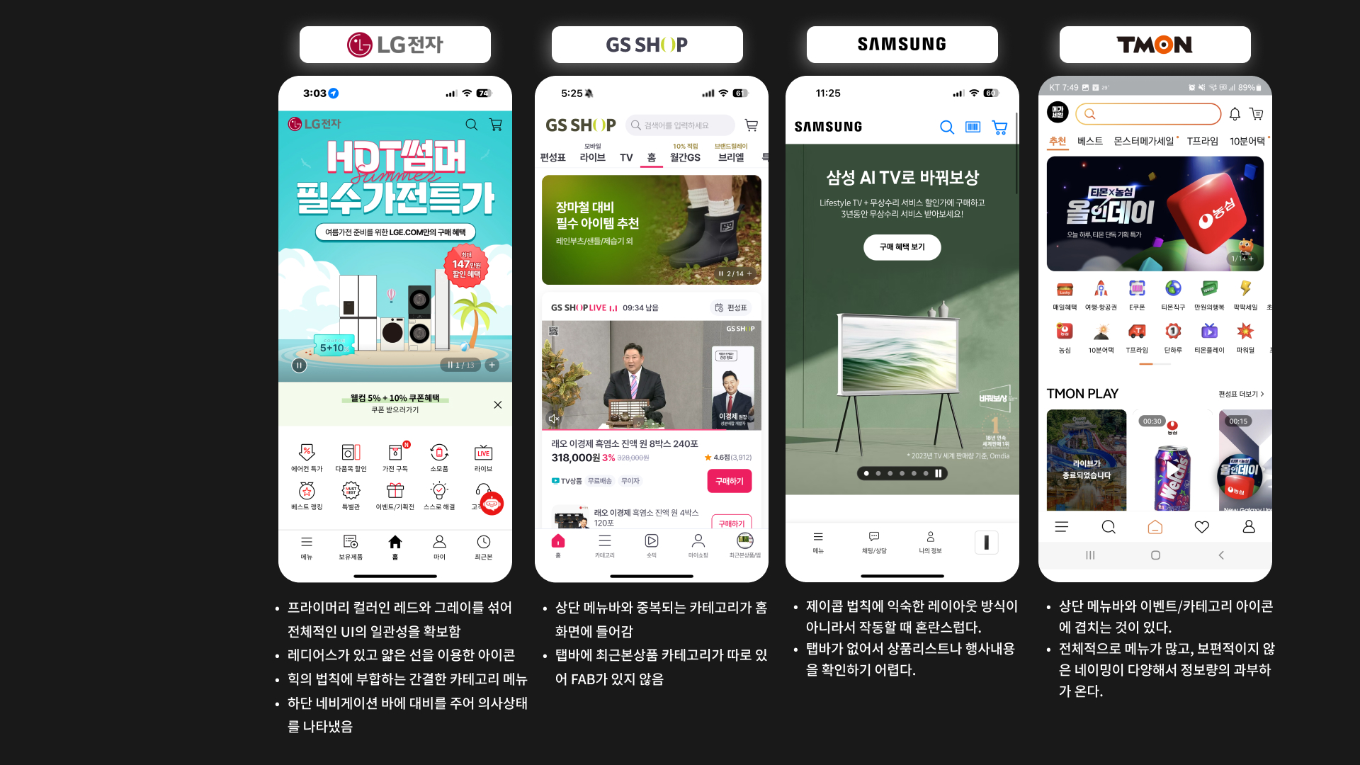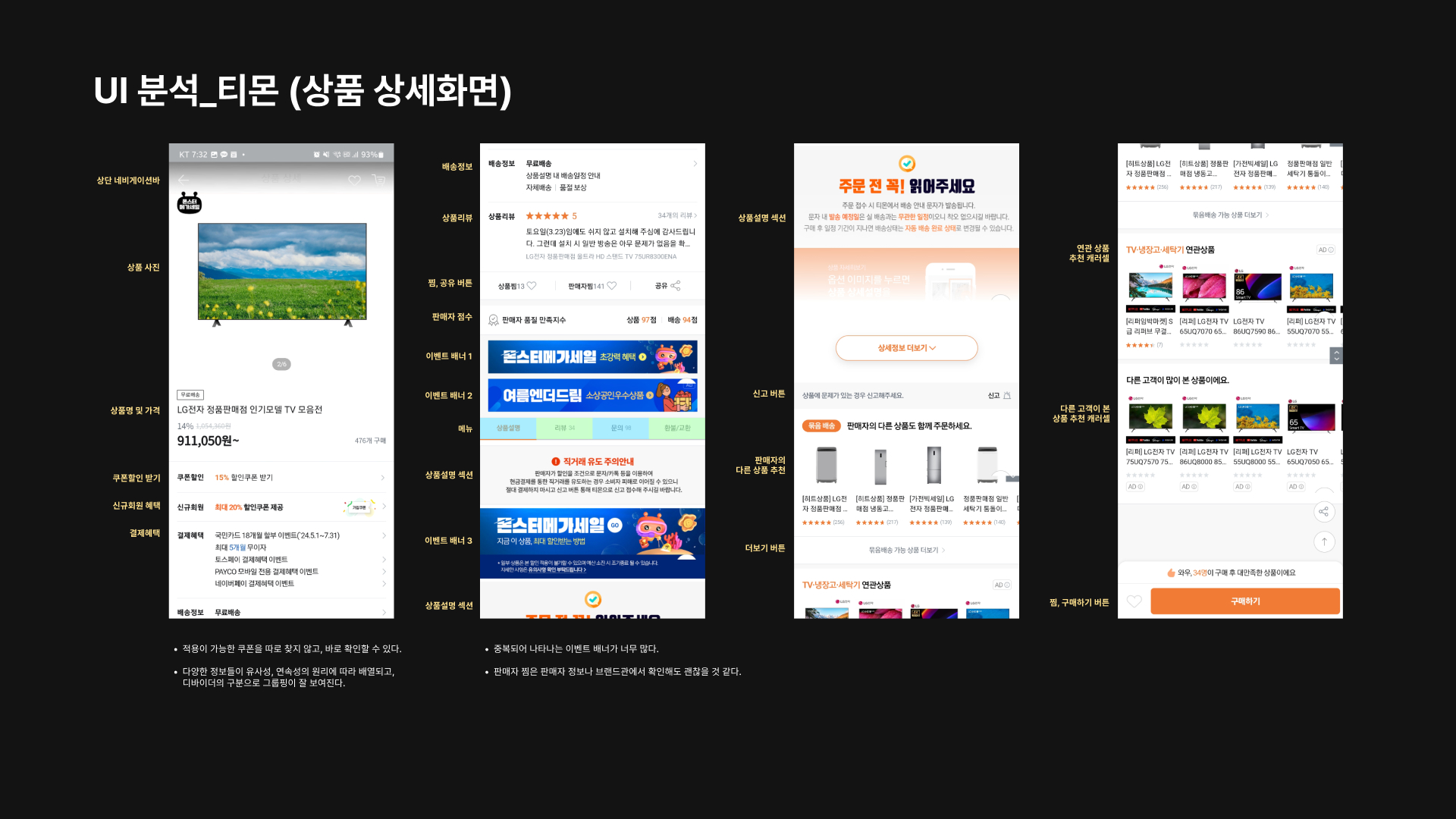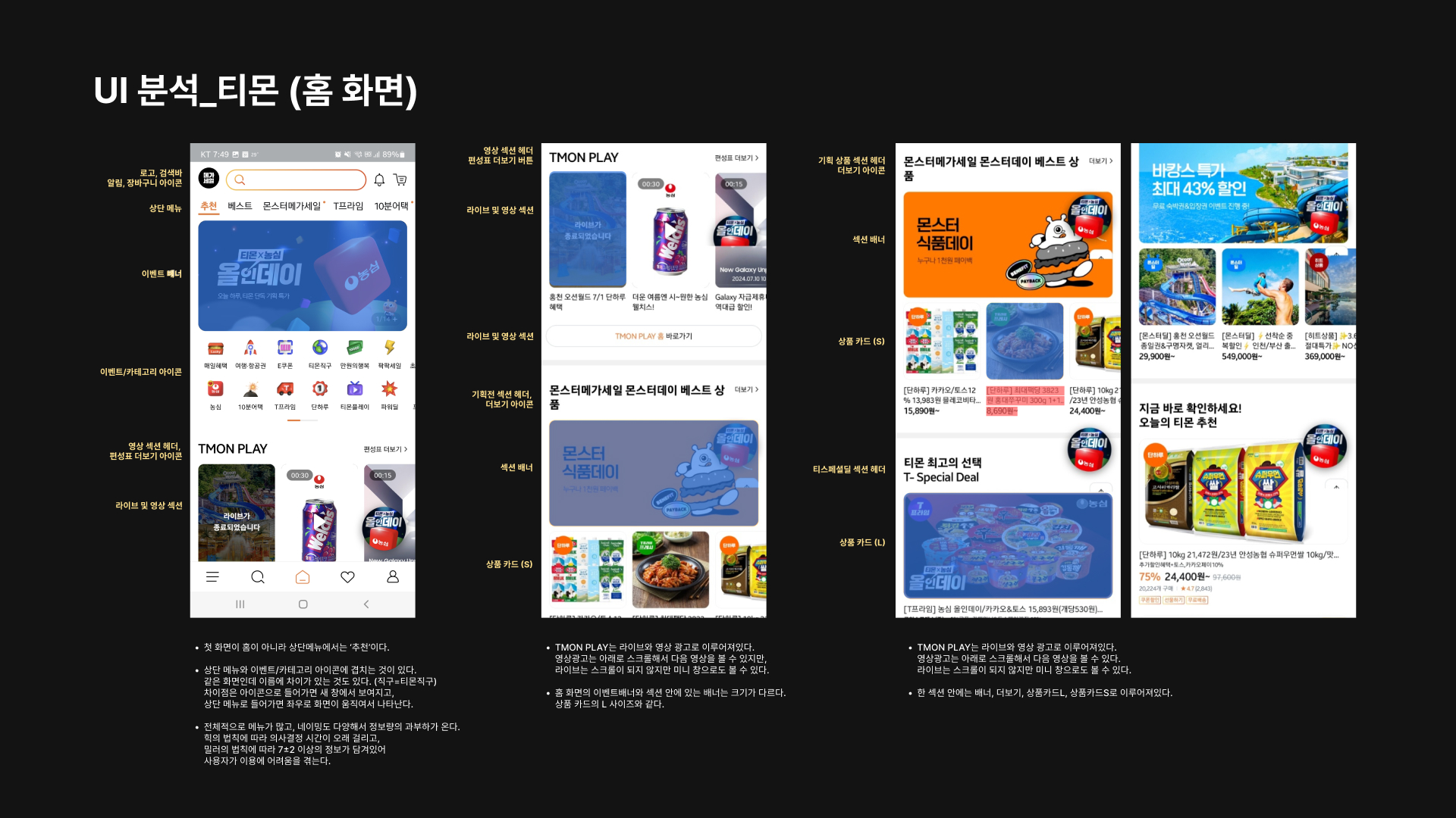 각자 하나씩 경쟁사 UI 분석
