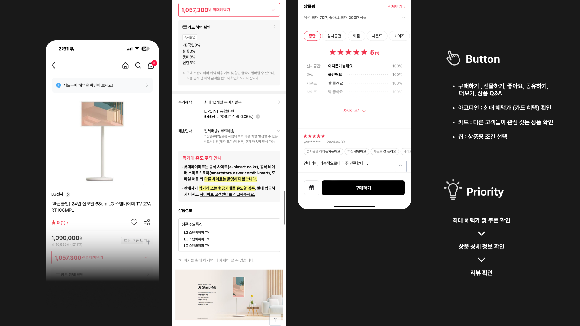 각자 하이마트 화면 하나씩 UI 분석 (그리드, 버튼, 우선순위 등)