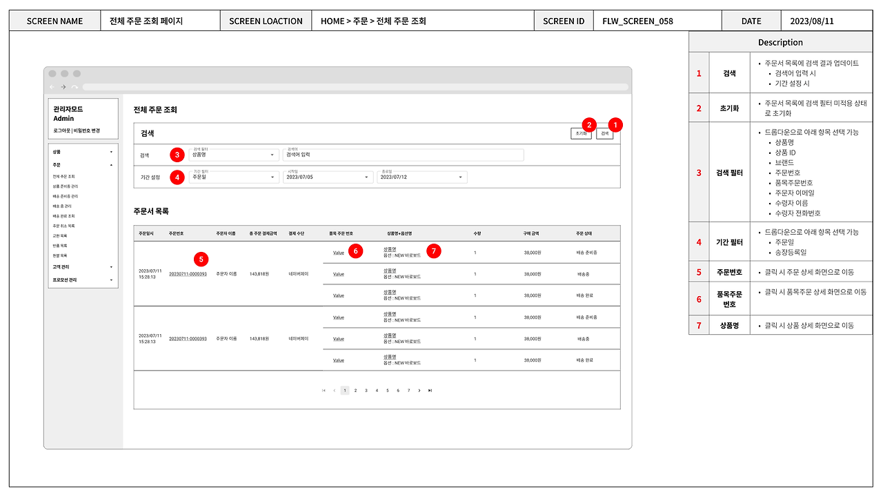 - 와이어프레임과 기능 상세 정의를 합친 문서