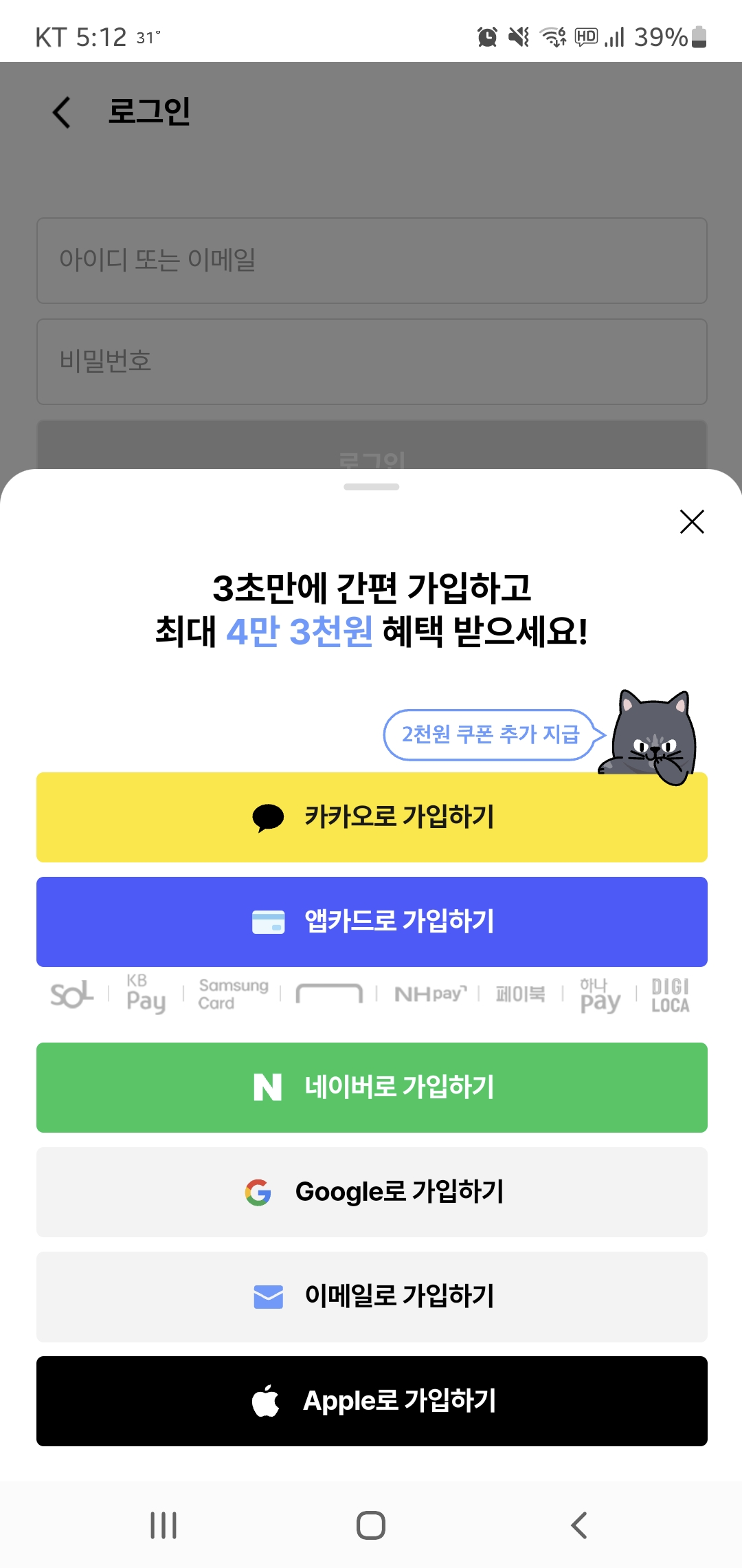 앱카드로 로그인해보세요
