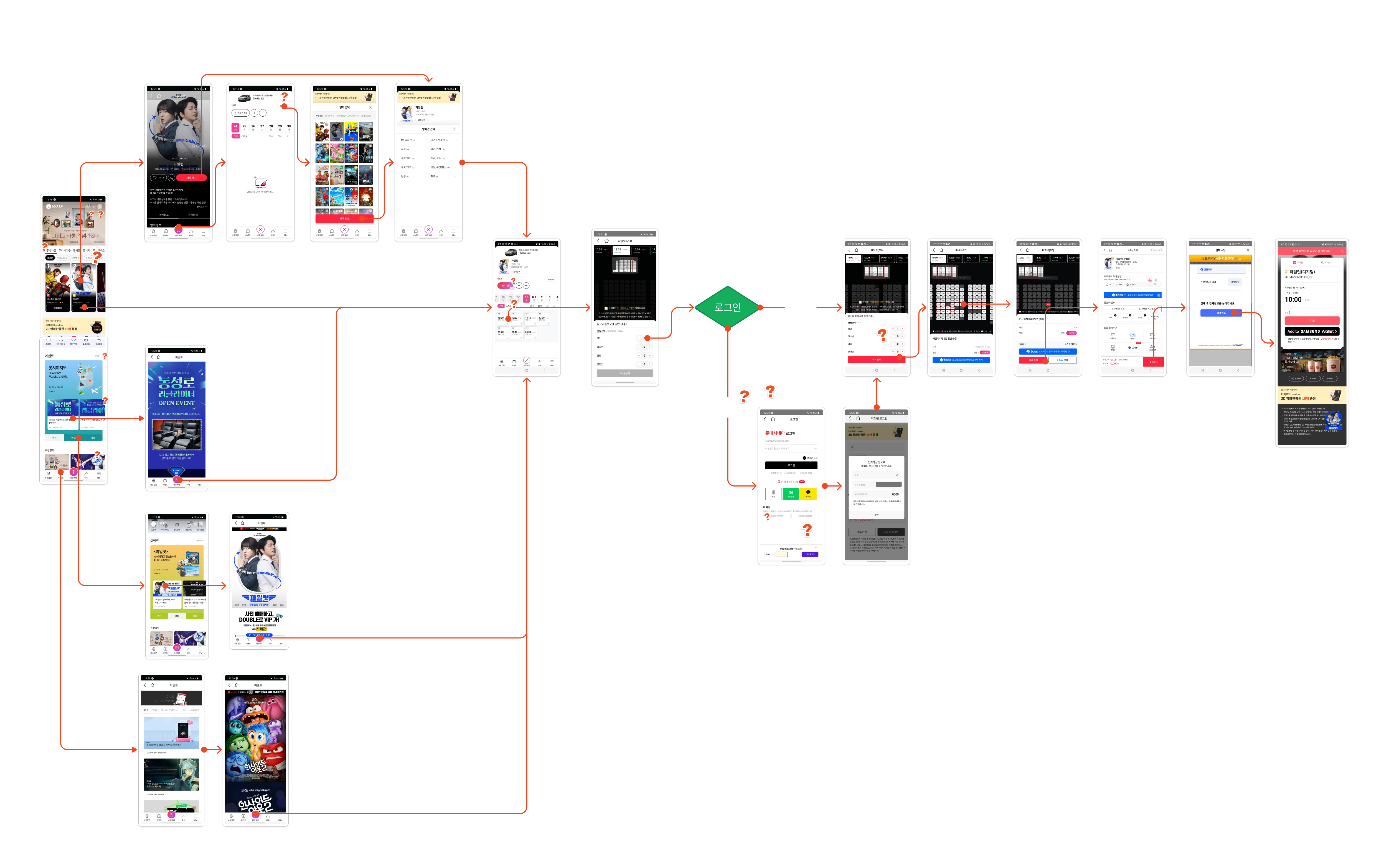 앱 접속 - 영화 탐색 - 영화 선택 - 예매 정보 입력 - 할인/혜택 적용하기 - 결제하기